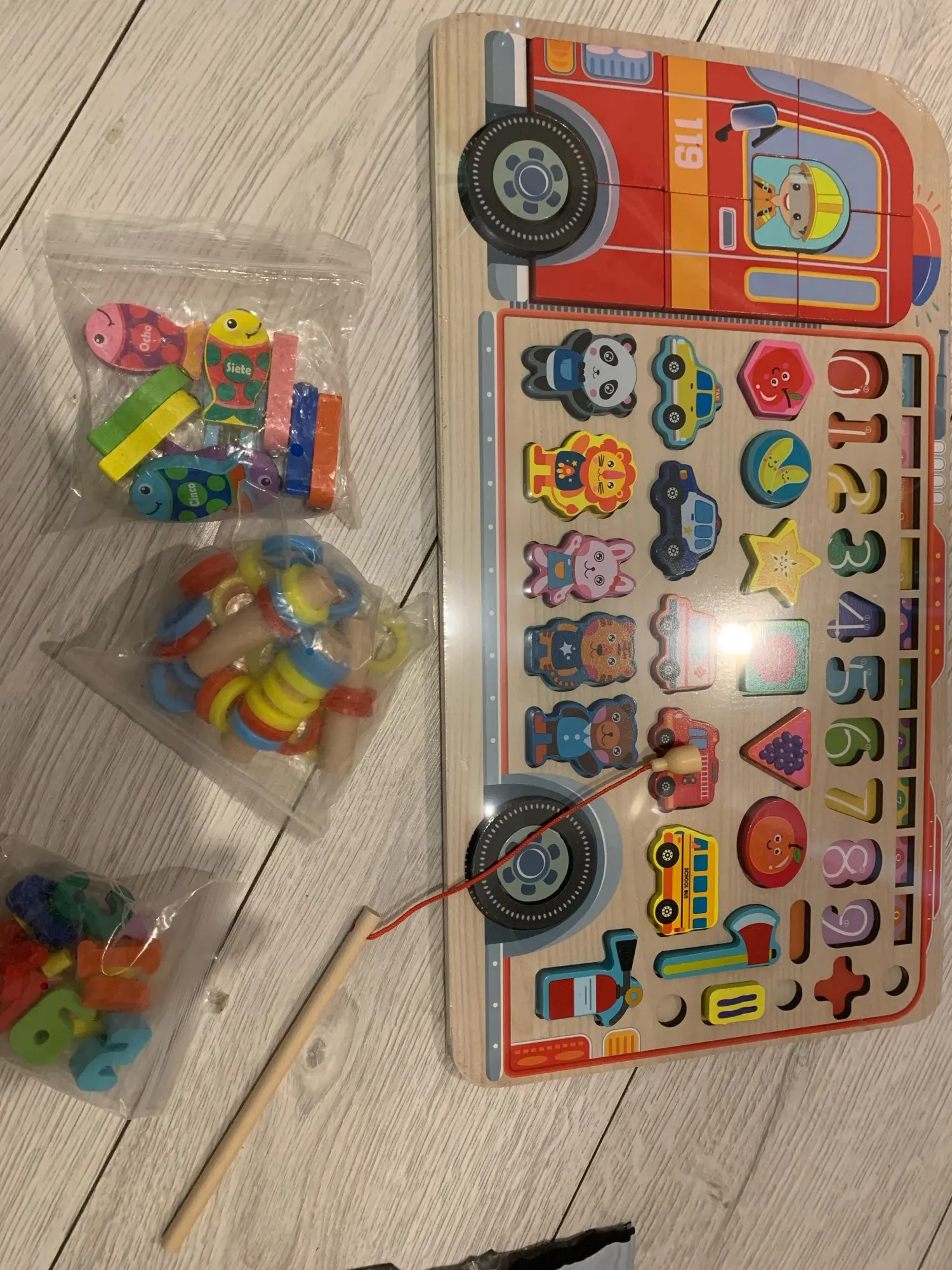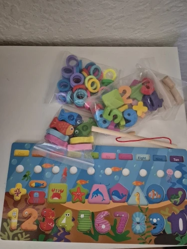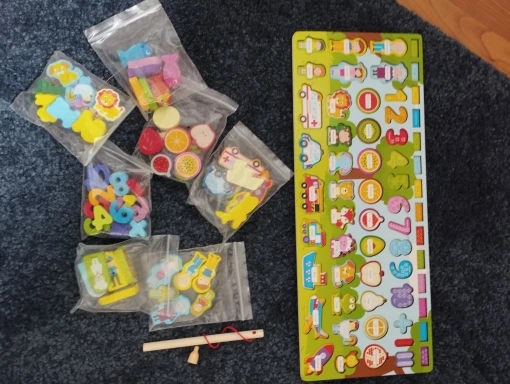 لعبة رياضية كاملة الكل في واحد: تحتوي أحجية لوحة الأوتاد هذه على أرقام ودوائر مختلفة الحجم يمكن للطفل فرزها أو ترتيبها أو استخدامها كعداد.بالإضافة إلى ذلك، تحتوي هذه اللعبة على لعبة صيد لطيفة جدًا مع أسماك خشبية وعمود صيد بحيث يمكن للأطفال الصغار اللعب عندما يشعرون بالملل.القطع كبيرة مقارنة بالألغاز الأخرى، لذا هناك فرصة أقل للاختناق ويسهل على الأيدي الصغيرة الإمساك بها.