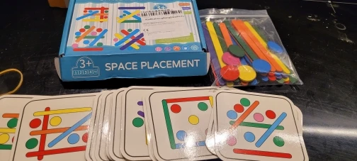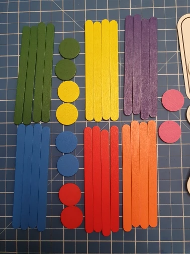 Very entertaining game, although a bit small in size. Also, one of the colors does not match the pieces: on the cards, a pink circle appears, but on the pieces, the circle is dark blue.