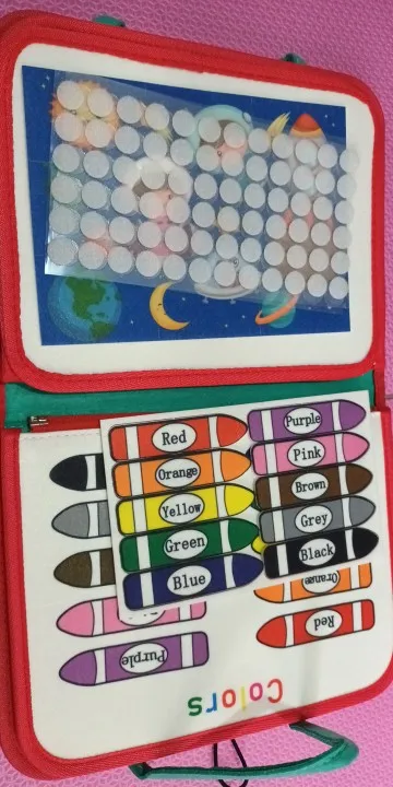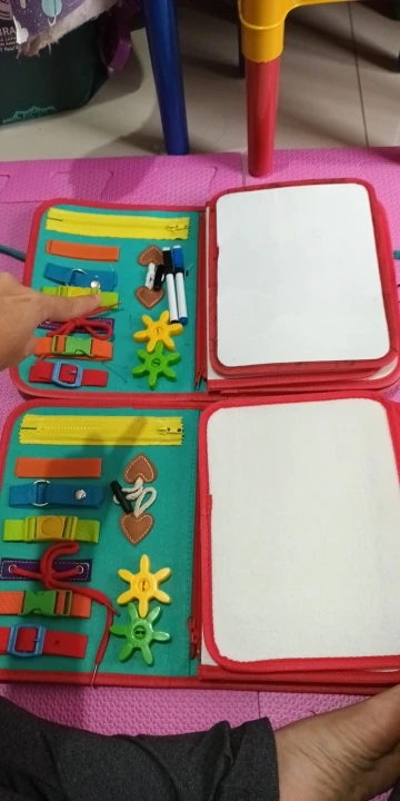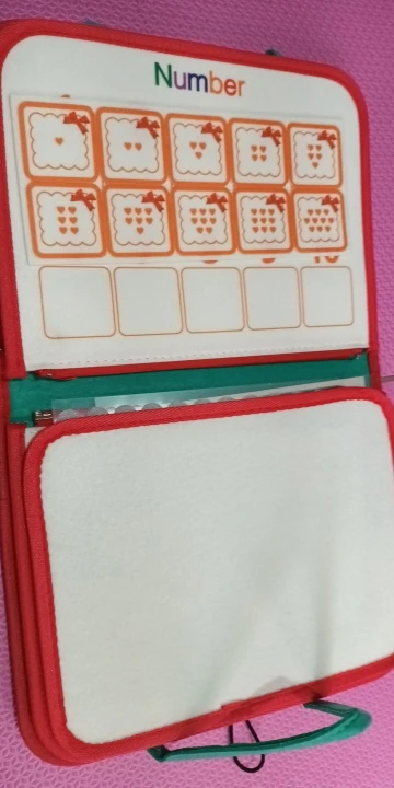 I didn’t pay attention, I bought it thinking it was the same as my daughter’s and it wasn’t. The last photo has my daughter’s drawing board that she uses for drawing and writing. This one doesn’t have. I bought it as a gift for a little friend from school, but now I won’t even give it. I would give it to someone younger. My 2-year-old daughter was already playing with it. I recommend it for children aged 2 to 3 years. I use it a lot when traveling by plane and car to avoid using my phone. Better to do activities.